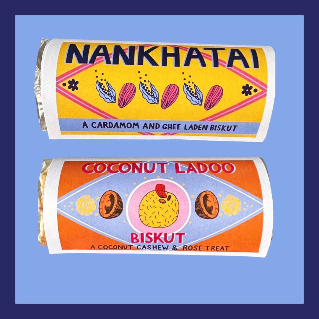 - The classic one: Nankhatai (Cardamom & Ghee) + Coconut Ladoo (Coconut, Cashew with White Chocolate)